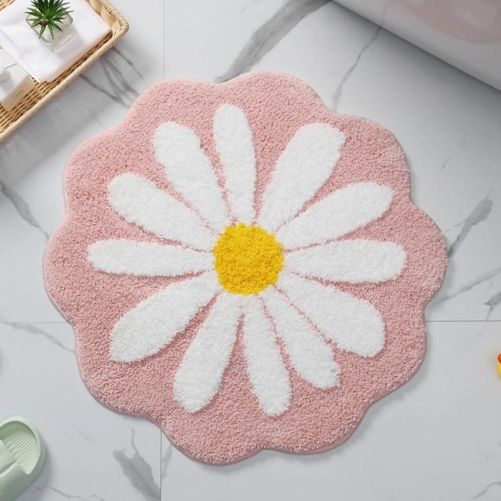พรมเช็ดเท้าลายดอกไม้ สีชมพู
